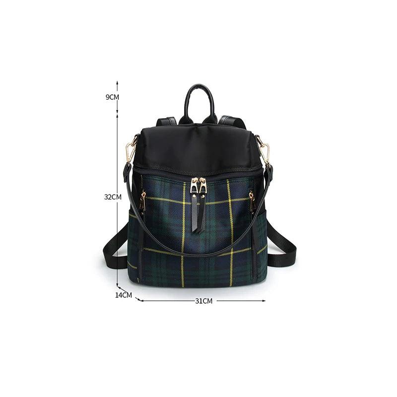 This plaid nylon backpack is perfect for women on the go. It's suitable for travel, school, and everyday use.