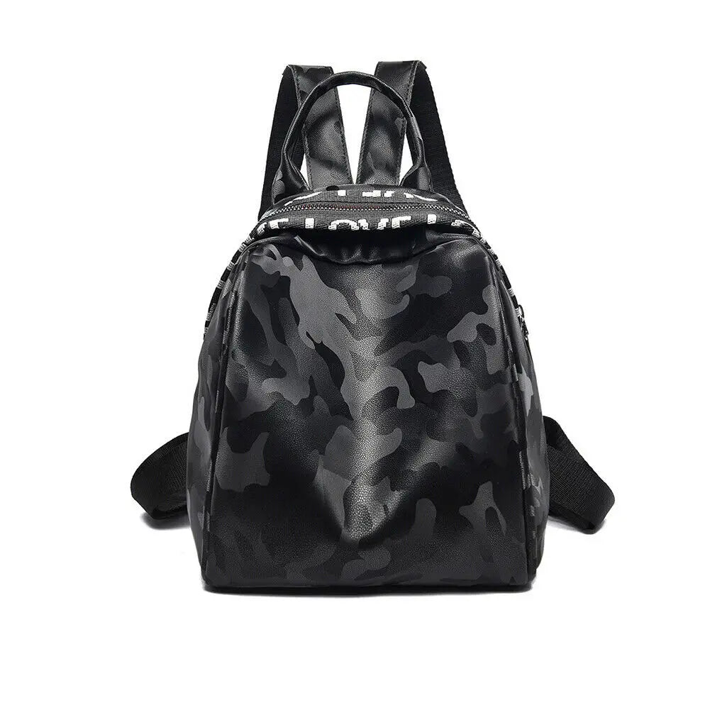 Women PU Leather Satchel Backpack Camo Letter Printed Shoulder Bag