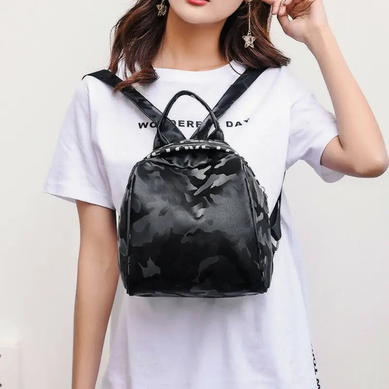 This stylish satchel backpack is perfect for travel, school, and everyday use. Made of high-quality PU leather with camo letter printing, it is both fashionable and durable.