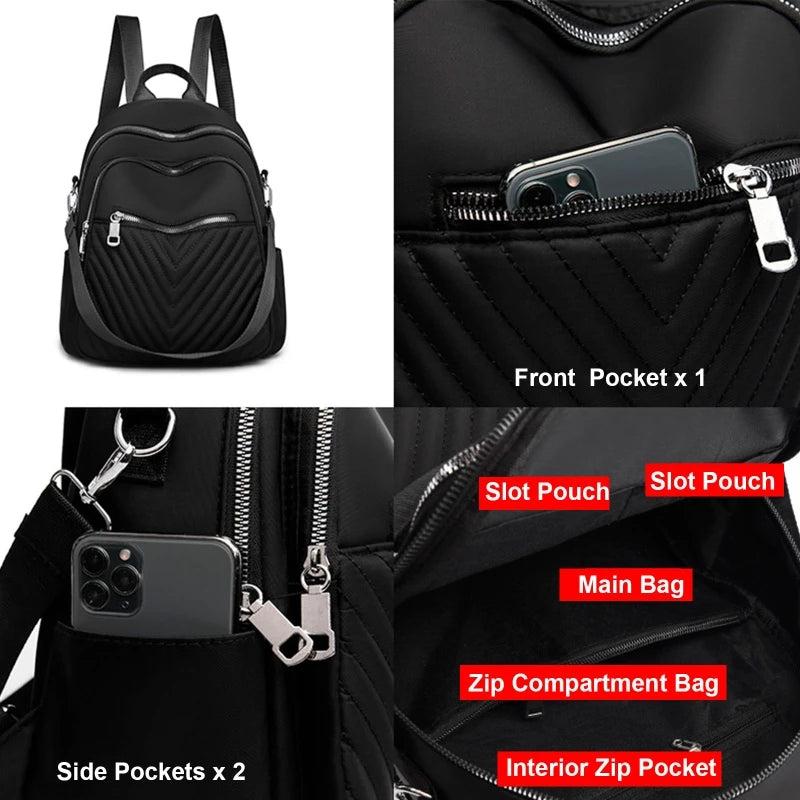 Women Shoulder Bag 2-in-1 Nylon Backpack Anti-Theft Daypack for Travel