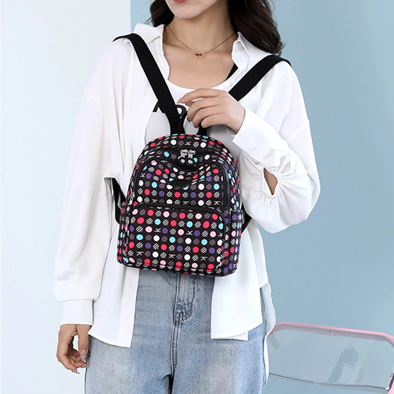 Description:This lightweight nylon travel backpack is perfect for females of all ages. The graffiti design adds a stylish touch.Features: Small backpack suitable for teen girls and women Made of high-quality lightweight nylon material Features graffiti design for a trendy look Ideal for travel, daily use, or school Adjustable shoulder straps...