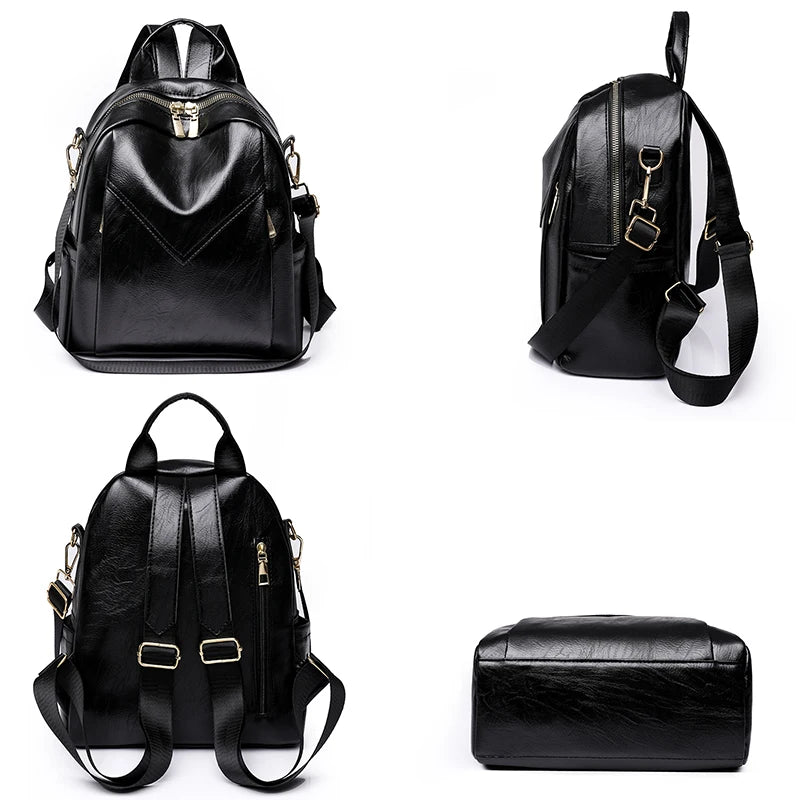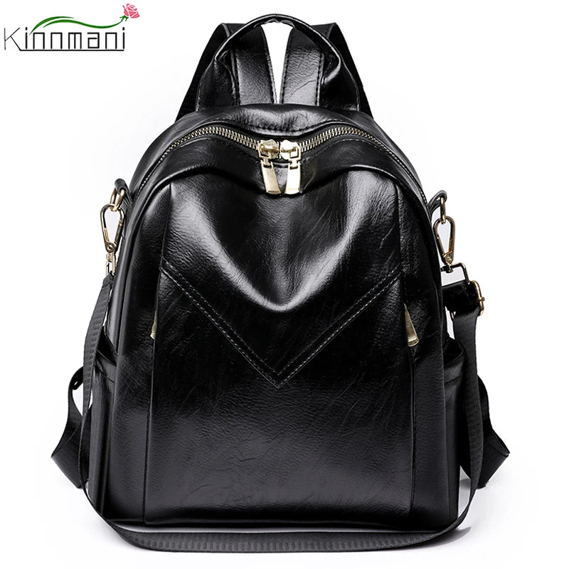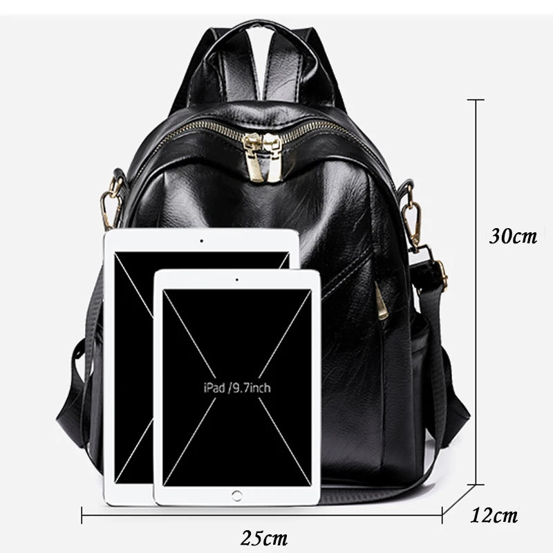 Women Soft Leather Backpack Solid Shoulder Bag High Travel Girl Schoolbag