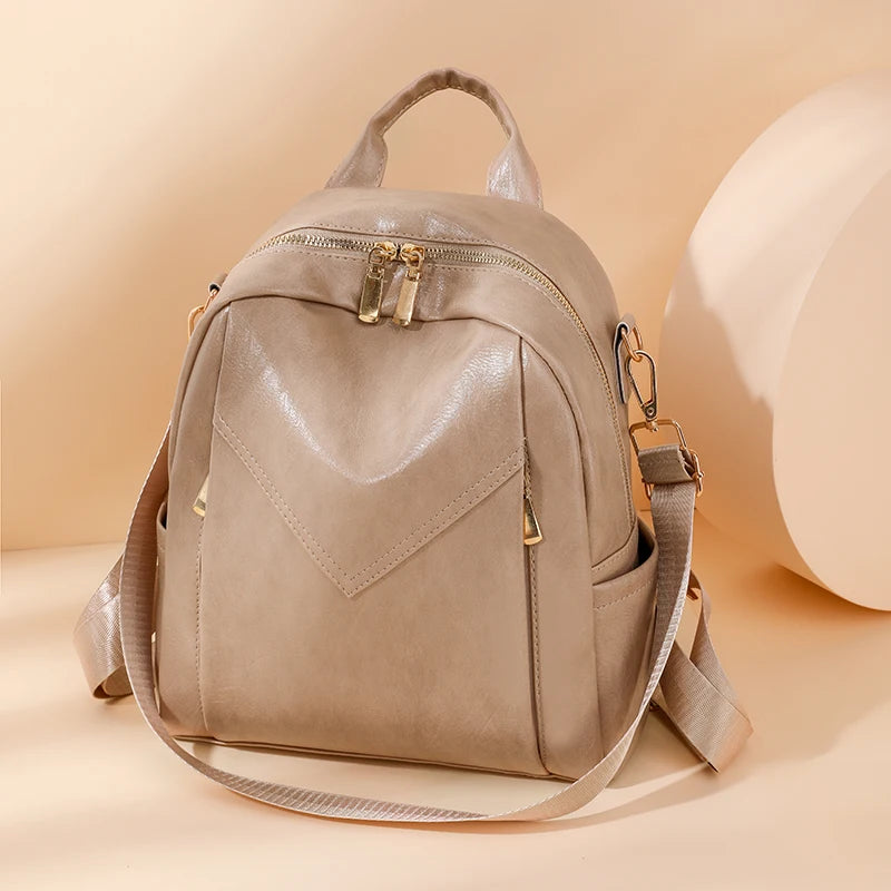 This women's soft leather backpack is perfect for travel, school, or everyday use. It offers a large capacity and comfortable shoulder straps.