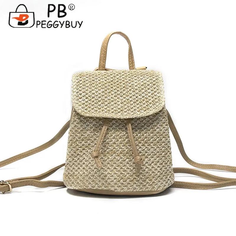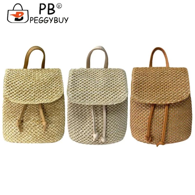 Women Straw Beach Shoulder Backpack Summer Beach Hand-Woven