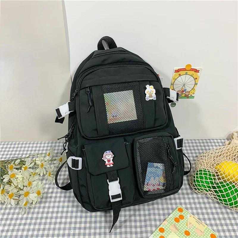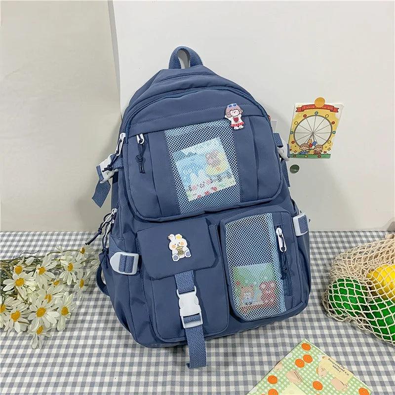 Description:This women's travel backpack is perfect for college, featuring multiple pockets and a transparent pocket for easy access. It is waterproof and has a large capacity for carrying a laptop.Features: Multiple pockets for organization Transparent pocket for easy access Waterproof material for protection Large capacity for laptop and school essentials...