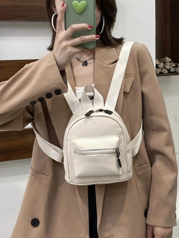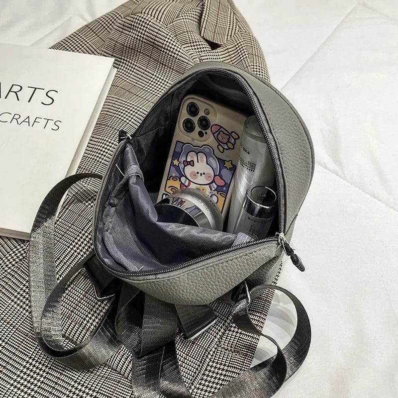 This small backpack is made of vintage PU leather with a lychee pattern. It is perfect for school or daily use, with a solid design and adjustable shoulder straps.
