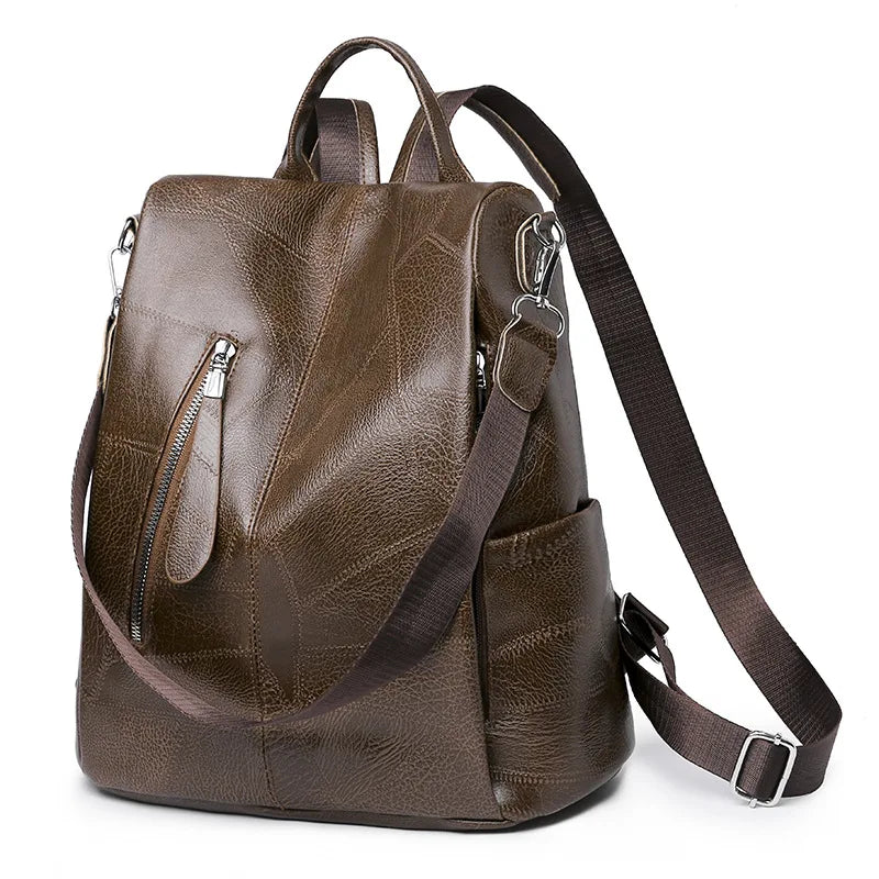 Women Zipper Leather Backpack Crossbody Shoulder School Bags