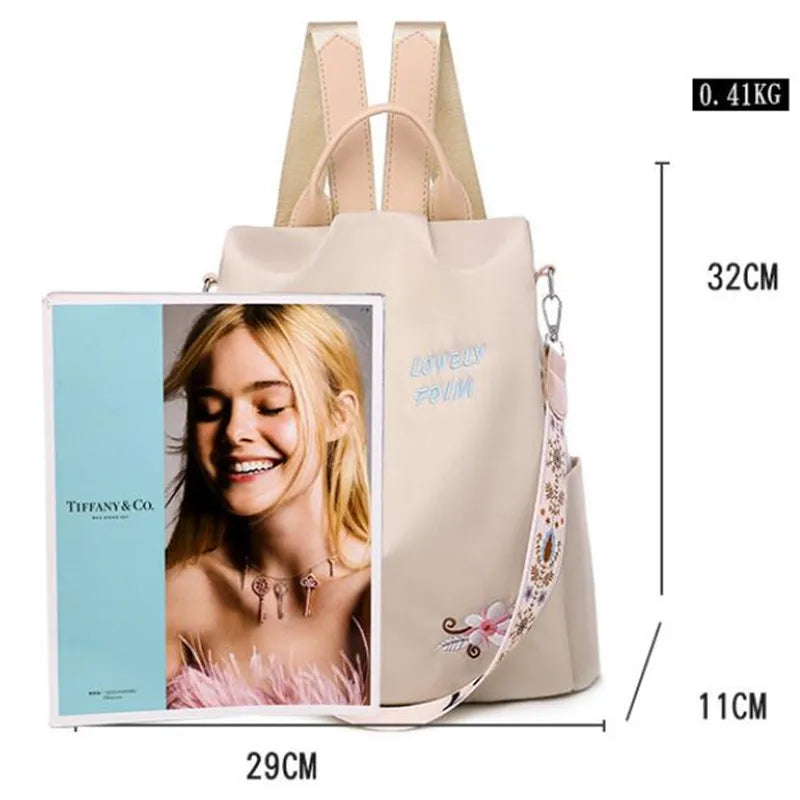 This women's backpack features an ethnic style 3D embroidery design, made of water-repellent Oxford cloth. Its anti-theft feature makes it perfect for travel and leisure activities.