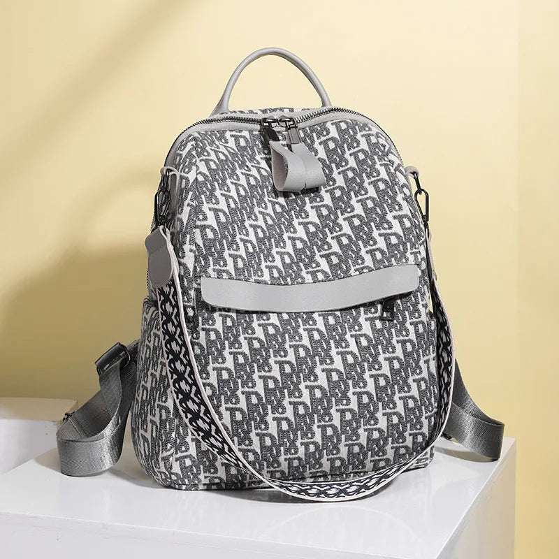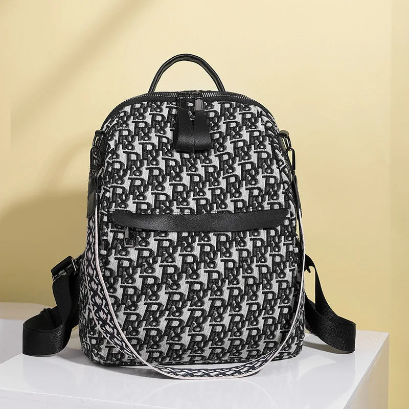 This women's backpack is designed with a stylish letter pattern on high-quality Oxford material. It is lightweight, breathable, and offers a large capacity for your belongings.