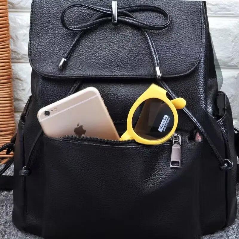Carry your essentials in style with this elegant women's backpack featuring a bowknot design. The spacious interior provides ample room for all your travel needs.