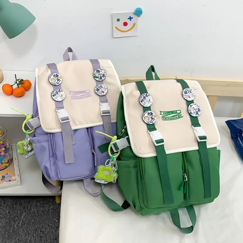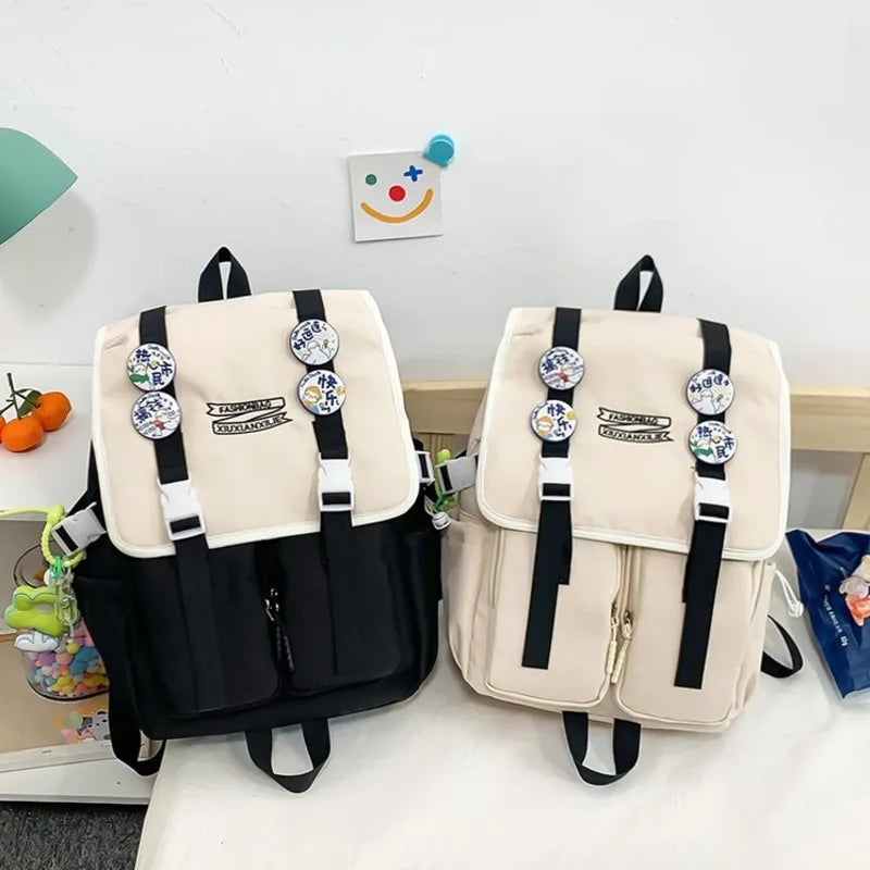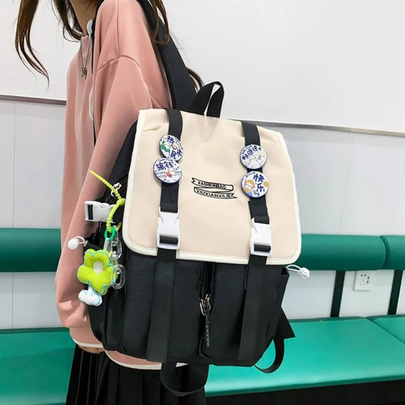 This women's canvas backpack is perfect for students with its large capacity and lovely contrast buckle design. Made of durable nylon, this portable backpack is both stylish and functional.