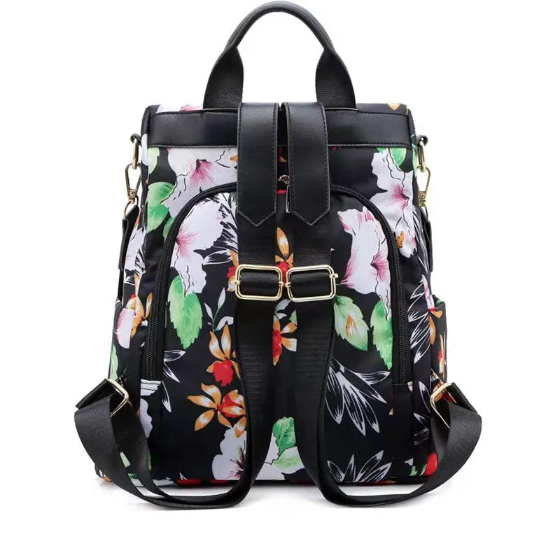 Stay stylish and secure with this versatile backpack featuring a trendy print design. Made of durable nylon, it offers ample storage and anti-theft features for daily activities.