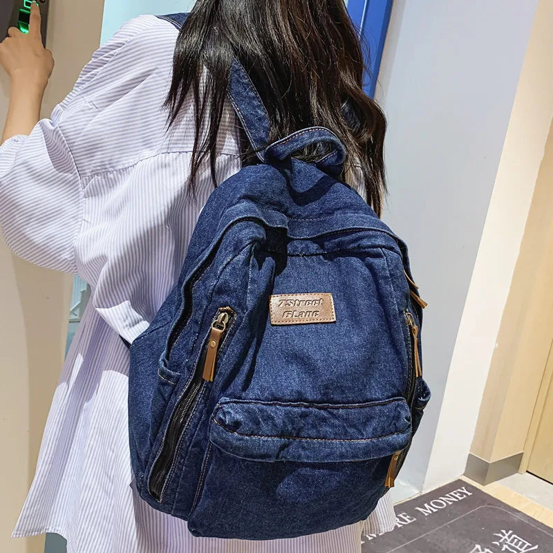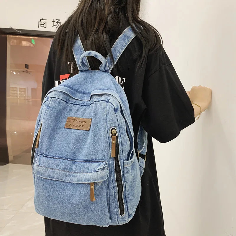Women's Denim Backpack Large School Bagpack for Teenagers Girls