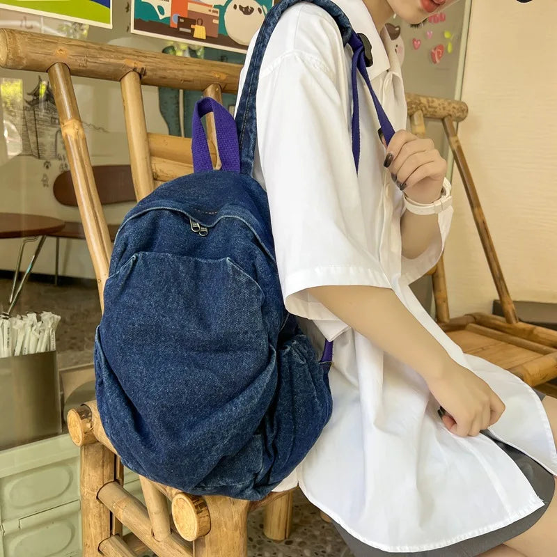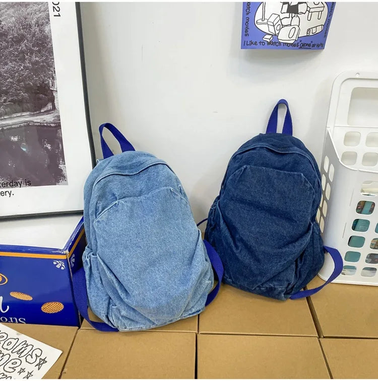 Women's Denim School Backpack for Teenagers Travel Bagpack
