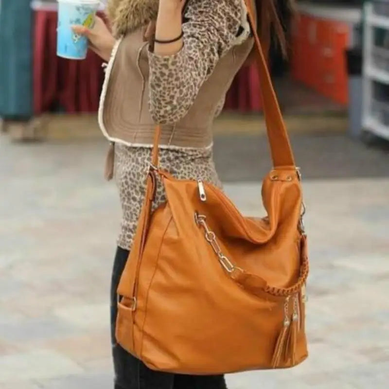 Women's Dual-use PU Leather Crossbody Shoulder Bag Tote Messenger Hobo Bag