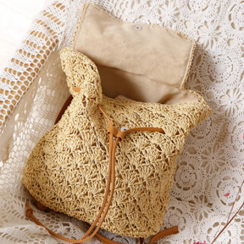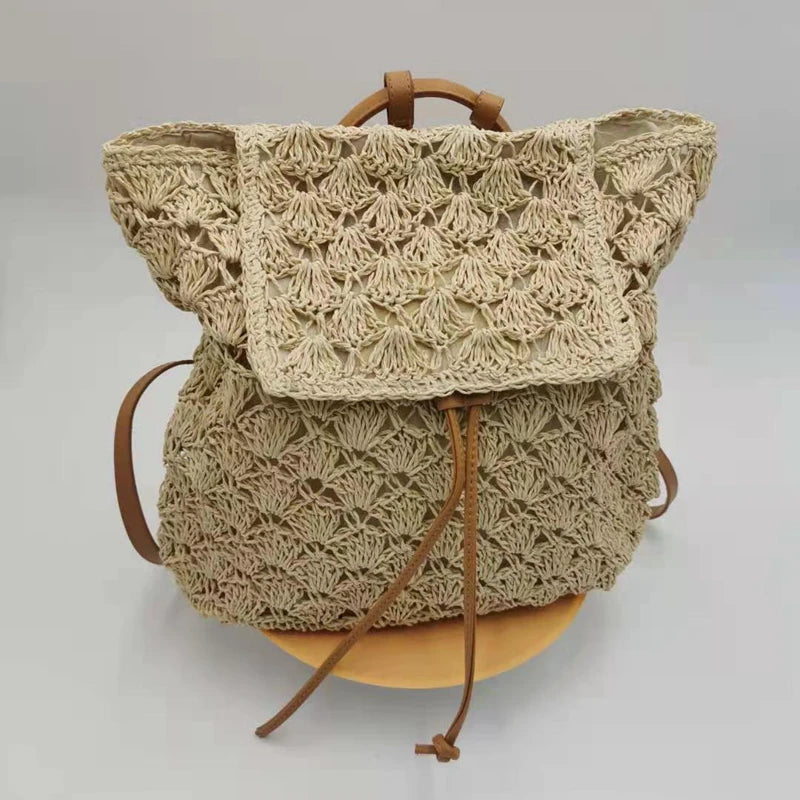 This stylish women's backpack is made of straw material, perfect for the beach or casual outings. It features a hollow out design and offers ample capacity for all your essentials.