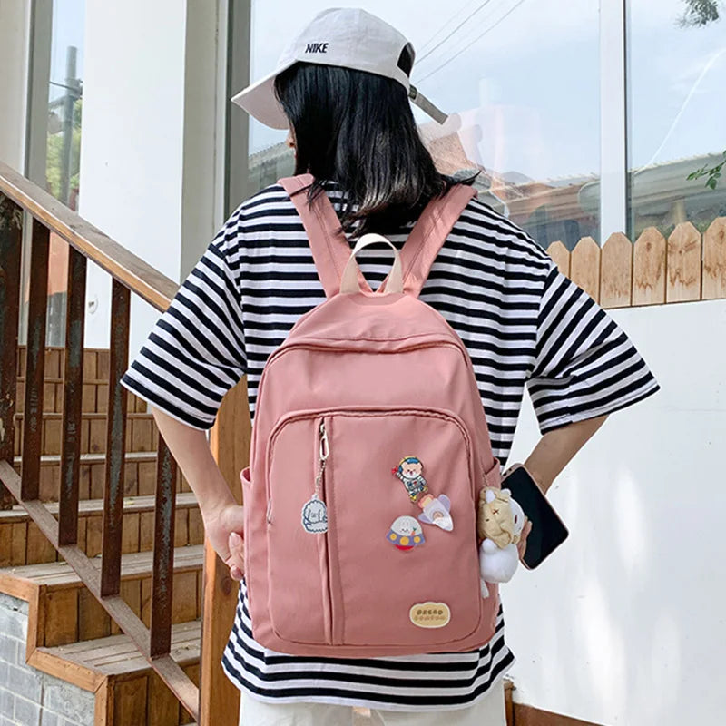 This multi-function backpack is perfect for girls and students. It features a trendy Harajuku style and can hold laptops. Ideal for casual use.