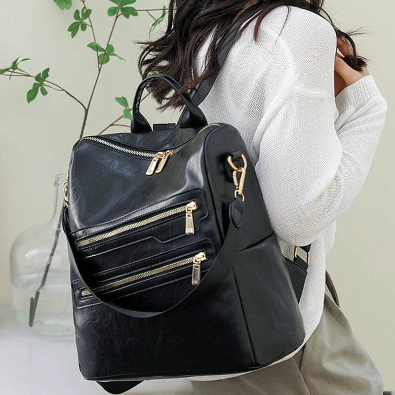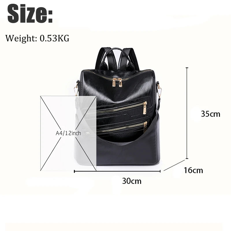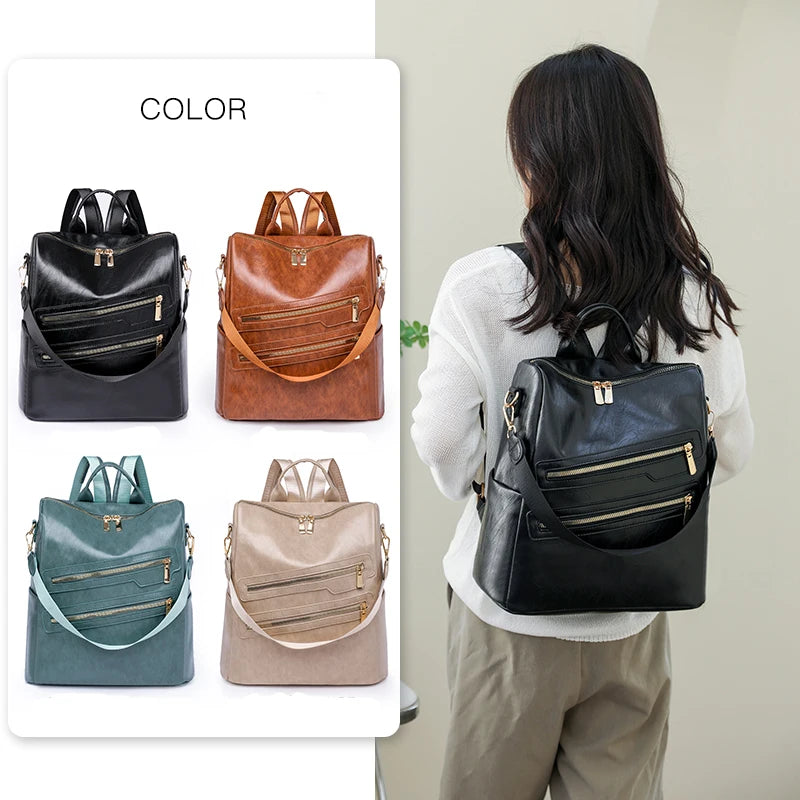 This high-quality leather backpack is designed for women with a large capacity, perfect for travel and school use. Its retro style adds a touch of elegance to your outfit.