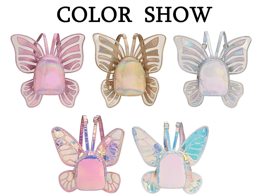 Women's Laser Mini Backpack Butterfly Angel Wings Daypack for Girls