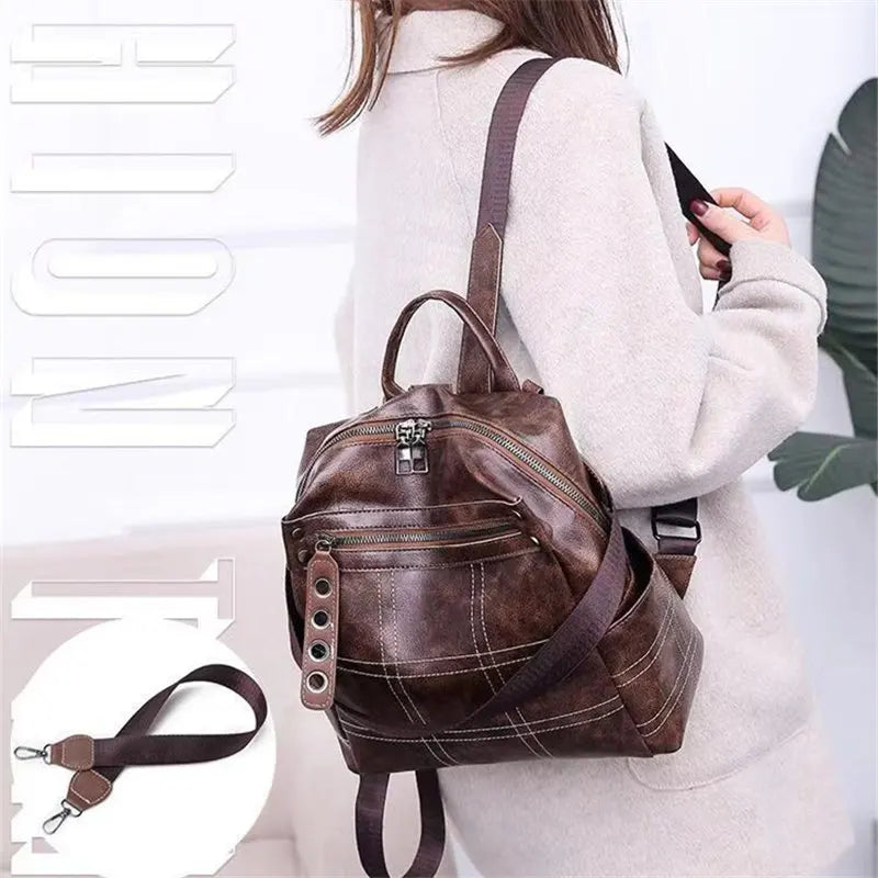 Women's Leather Backpack Girl School Shoulder Bag Bagpack Mochila