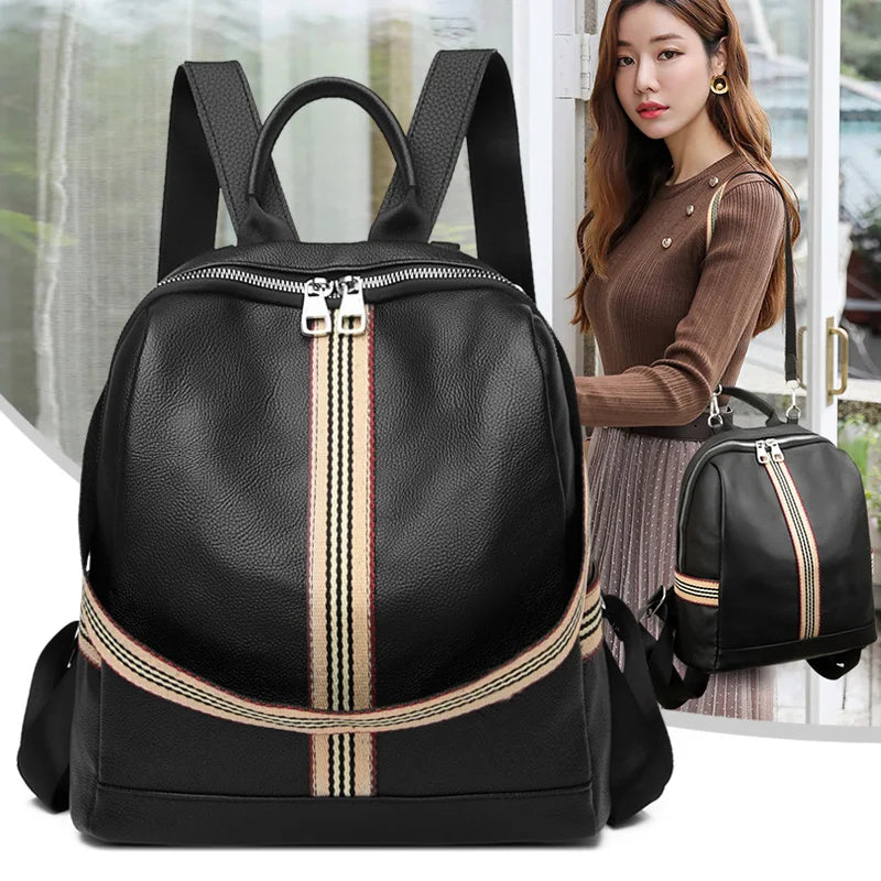 This stylish leather backpack is perfect for teenage girls and ladies. It offers a large capacity to carry books, gadgets, and more. Ideal for school and daily use.