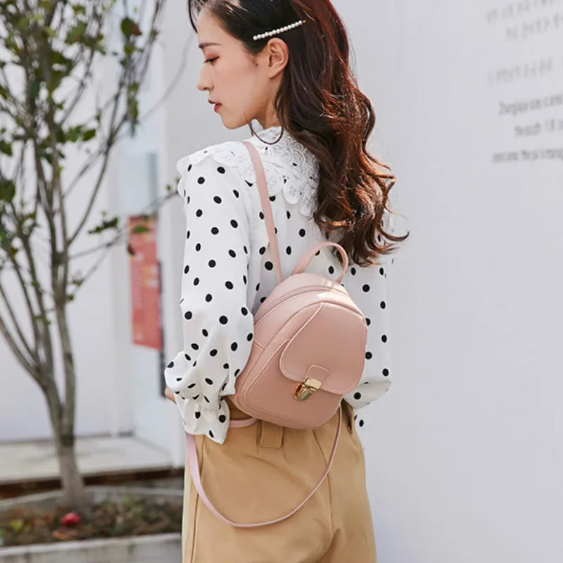 Women's Leather Mini School Backpack for Teenage Girls Small Female Bag