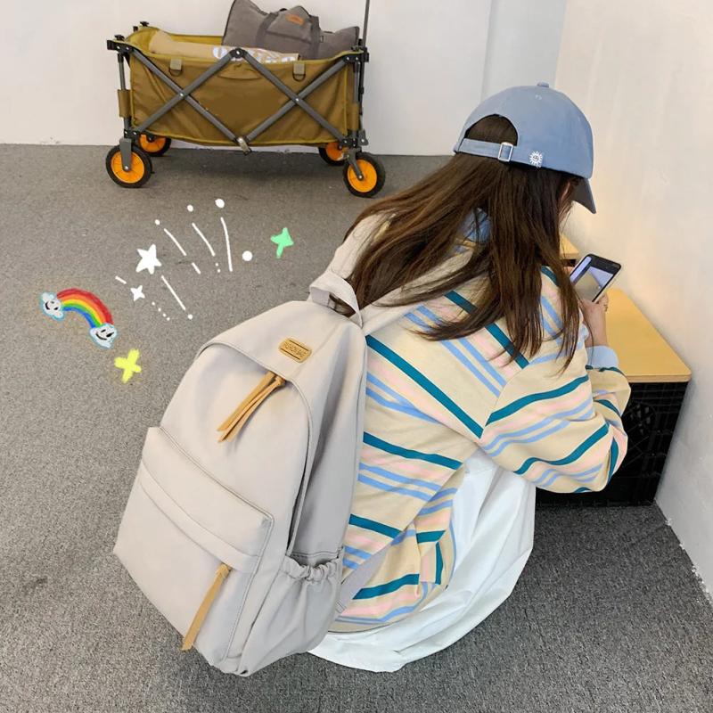 This solid women's backpack is perfect for daily use, school, travel, or outdoor activities. It features multiple pockets for convenient storage and organization. The adjustable straps ensure a comfortable fit.