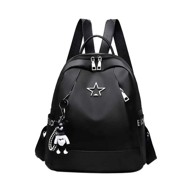 This stylish backpack is made of durable Oxford cloth and is perfect for school, travel, or everyday use. It features a cute bear pendant for added charm.