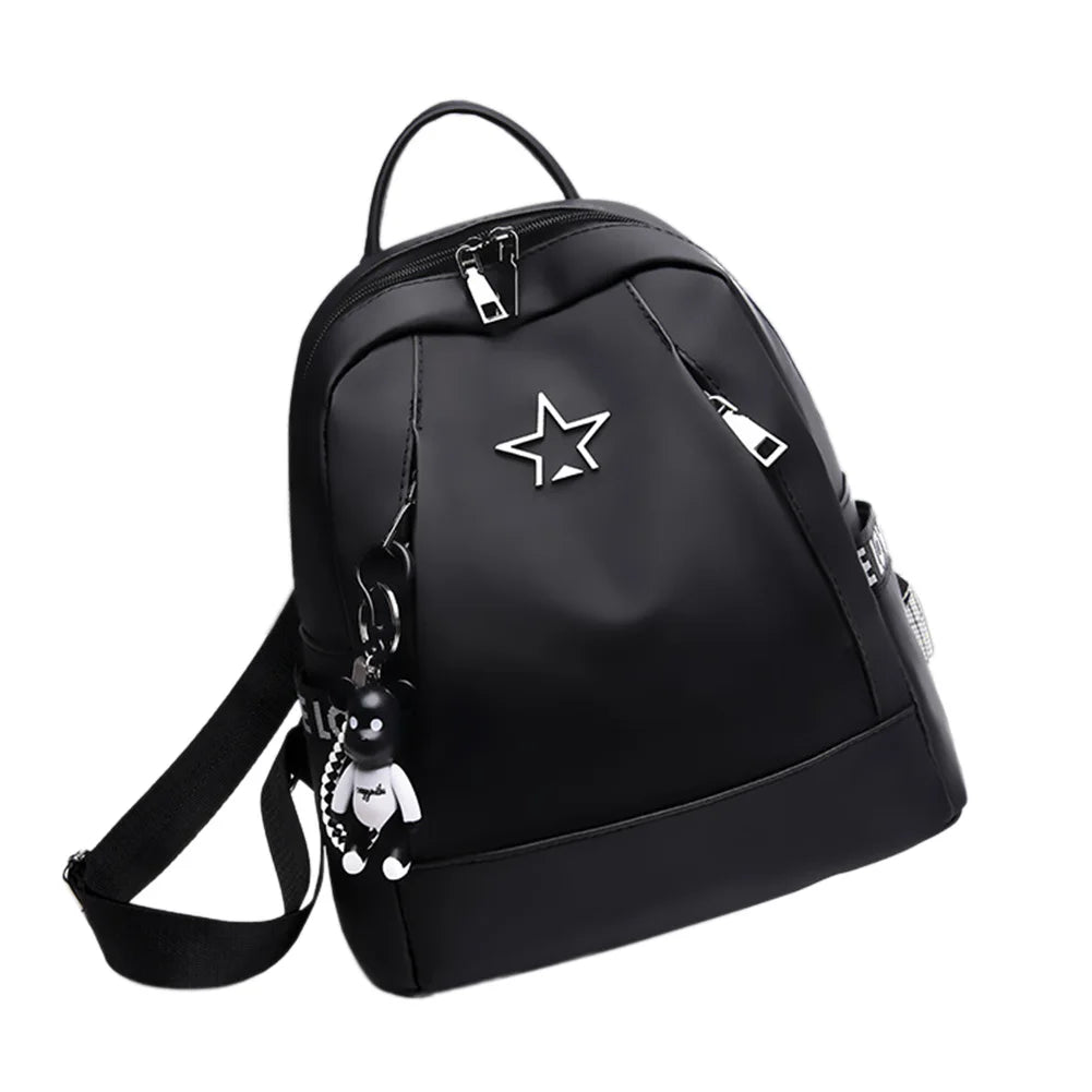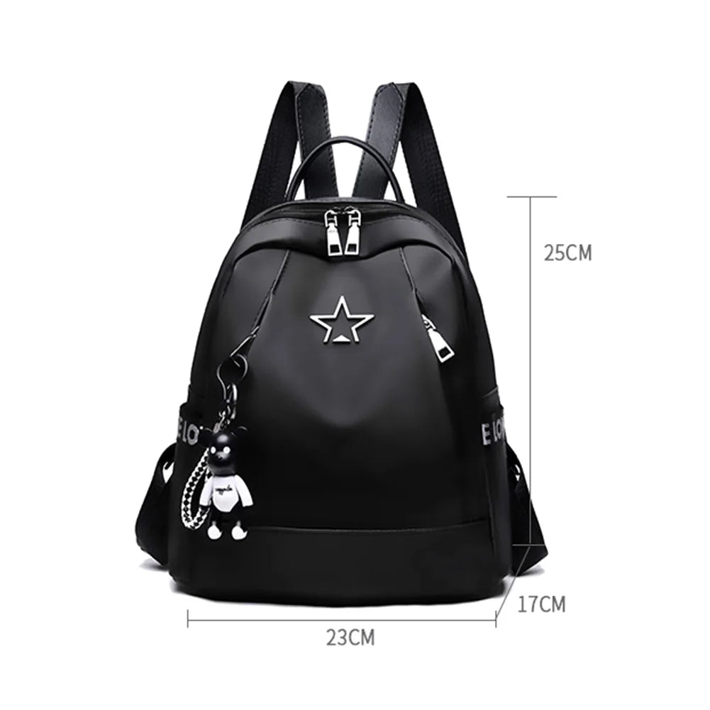 Women's Oxford Backpack School Travel Shoulder Bag with Bear Pendant