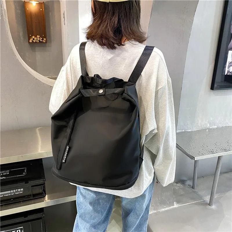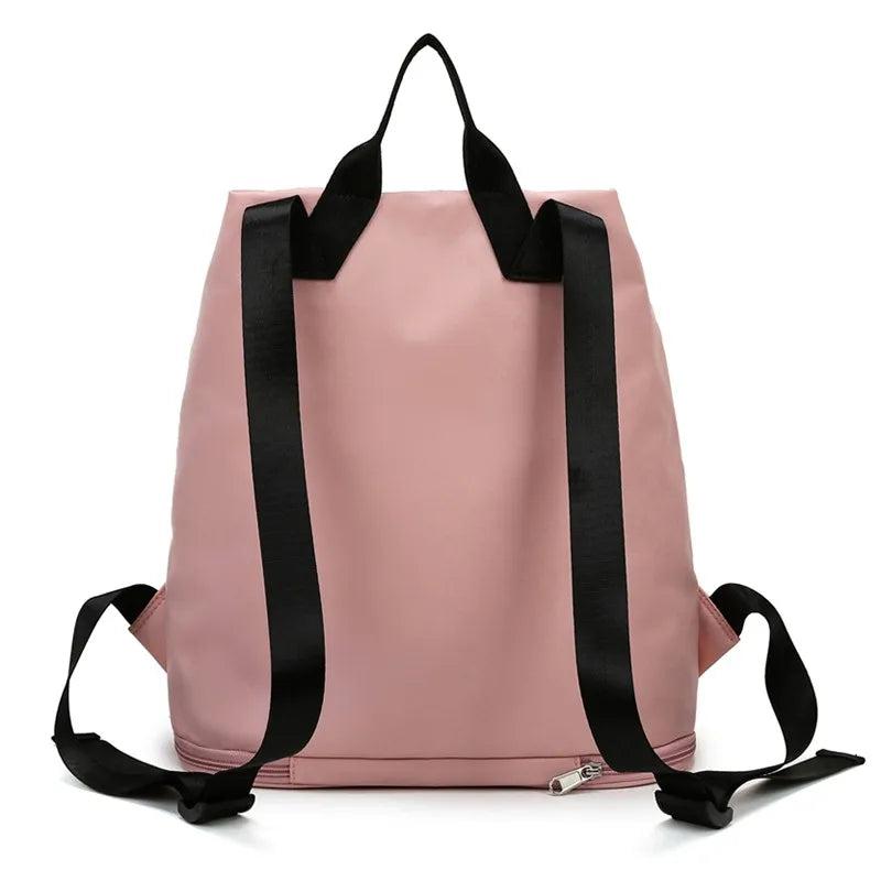 This women's backpack is made of durable oxford spinning material with a large capacity, perfect for fitness, yoga, school, and more. It is waterproof and ideal for students.