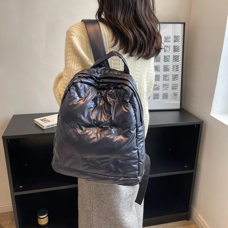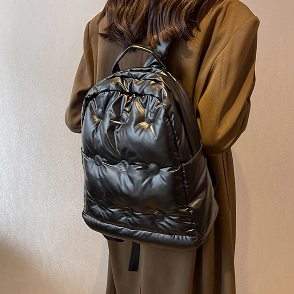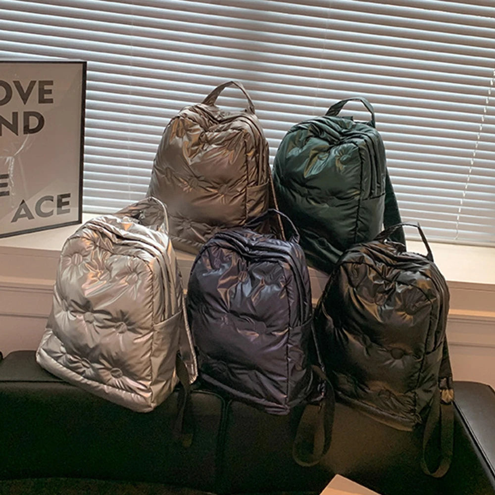Stay warm and stylish with this down padded backpack made of high-quality nylon. Perfect for school, work, or everyday use.