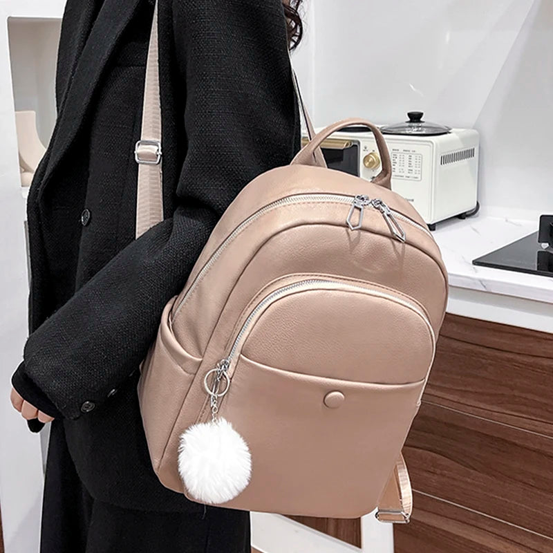 This women's backpack is made of high-quality PU soft leather, perfect for leisure travel and school use. It offers a large capacity and is ideal for teenage girls.