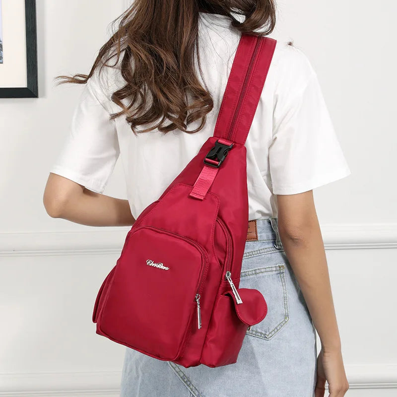 Waterproof nylon crossbody bag perfect for girls on the go. This small backpack features a retro floral design, making it a stylish choice for everyday use.