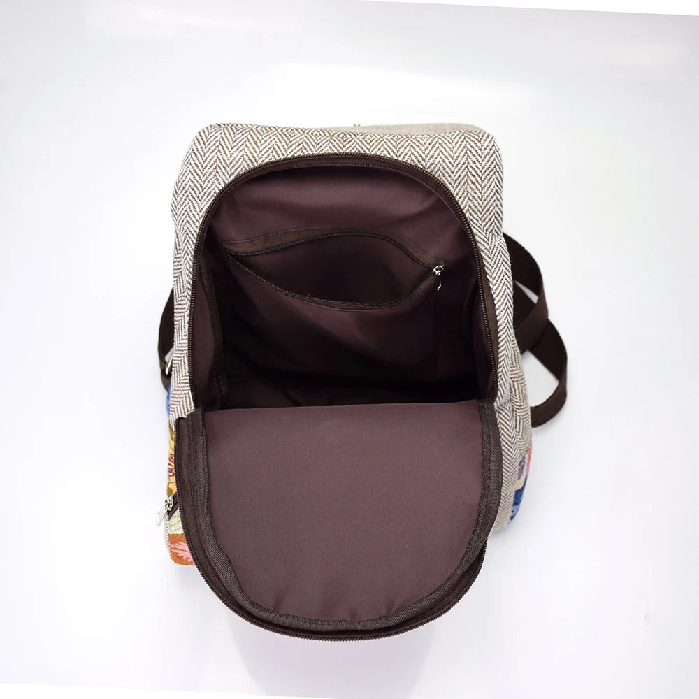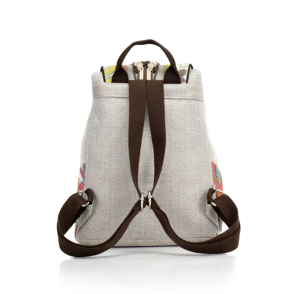 Women's Small Canvas Backpack, Floral Embroidered Rucksack