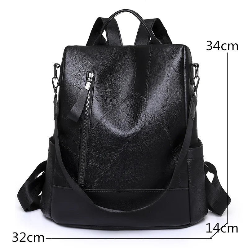 Women's Soft Leather Backpack - Large Capacity School Bag for Girls