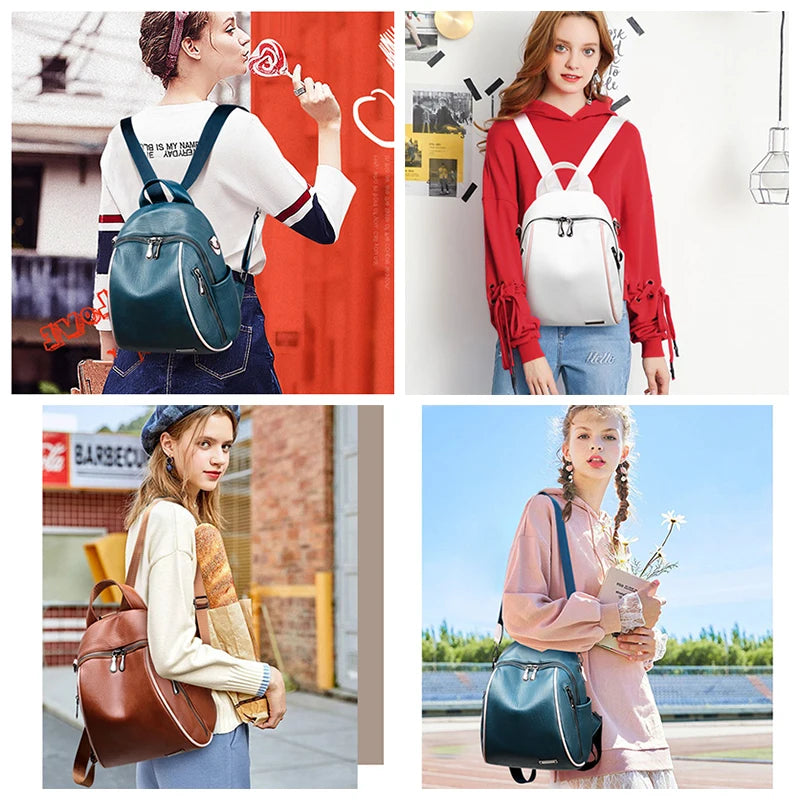This women's backpack is made of high-quality soft leather, perfect for school or travel. It offers a large capacity and comfortable shoulder strap design.
