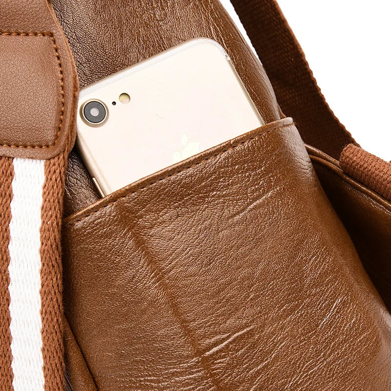 Stay stylish and organized with this soft PU leather backpack designed for women. It offers a large capacity to hold all your essentials conveniently.