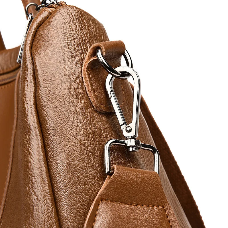 Women's Solid PU Leather Backpack Large Capacity Mochilas Para Mujer