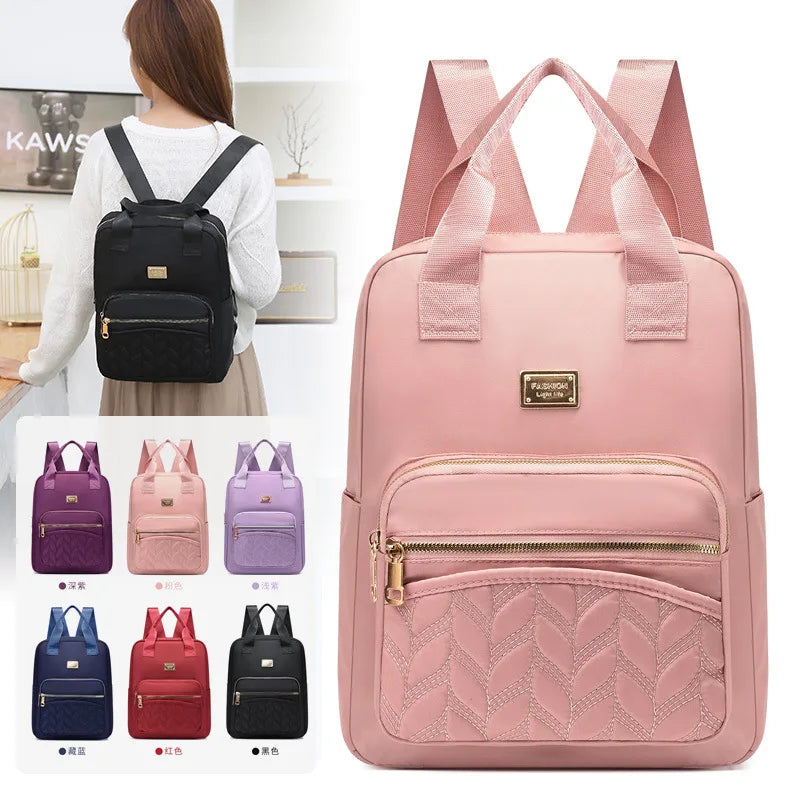 Women's Solid Travel Backpack Nylon Schoolbag for Women