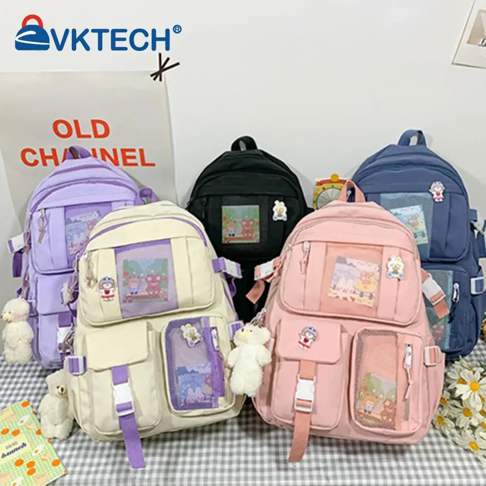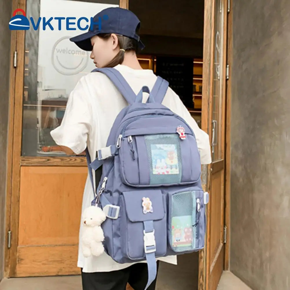 Stay organized and stylish with this women's travel backpack that features a transparent pocket, waterproof design, and ample storage space. Ideal for university students and travelers.