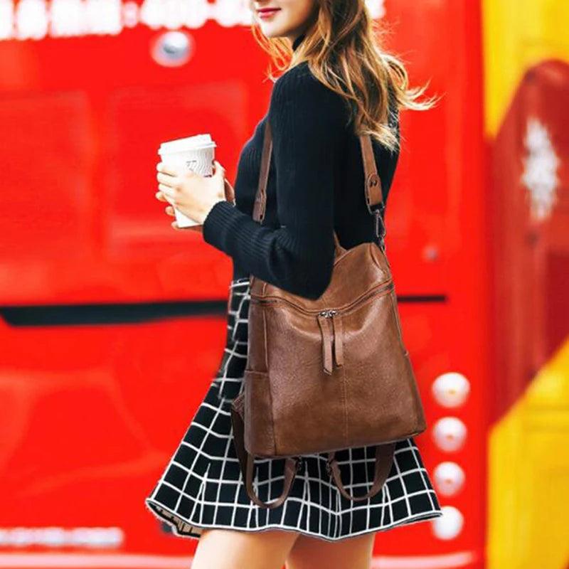 Stay stylish and organized with this versatile backpack. Made of high-quality leather, perfect for leisure travel.