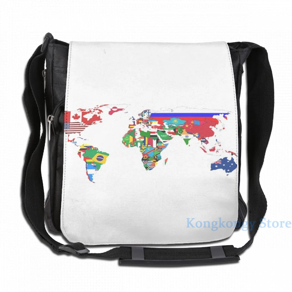 This fun graphic print backpack features a world map with flags design and USB charging port. Perfect for school, work, or travel.
