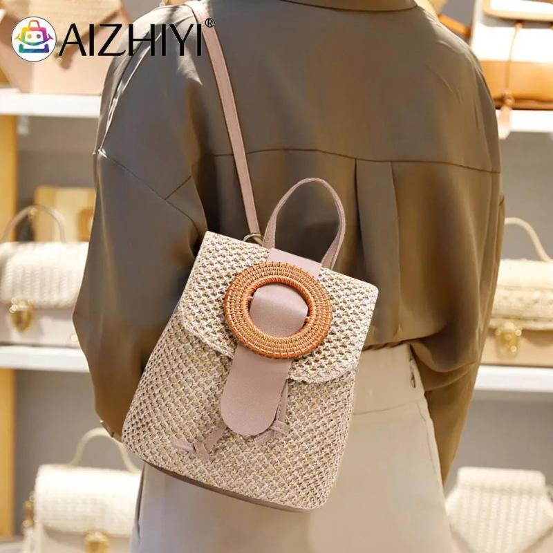 This hand-woven straw bag is perfect for the beach, featuring a versatile shoulder bag design that can also be worn as a backpack.