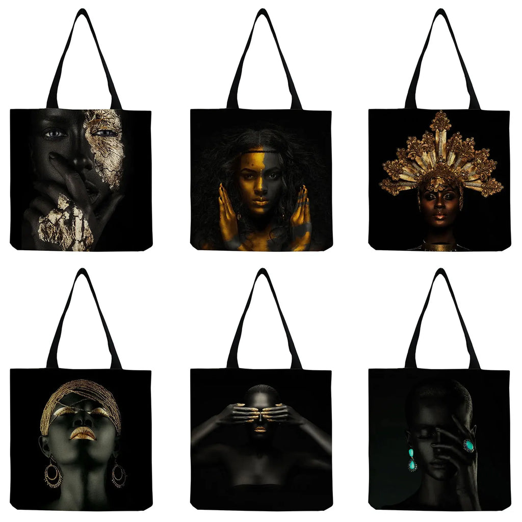 African Art Woman Print Tote Bag Foldable Eco Friendly Women Shoulder Bag