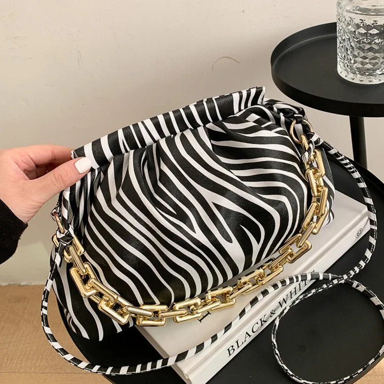 Stay stylish with this fashionable animal prints shoulder bag made of PU leather. It features a chain armpit strap for easy carrying.