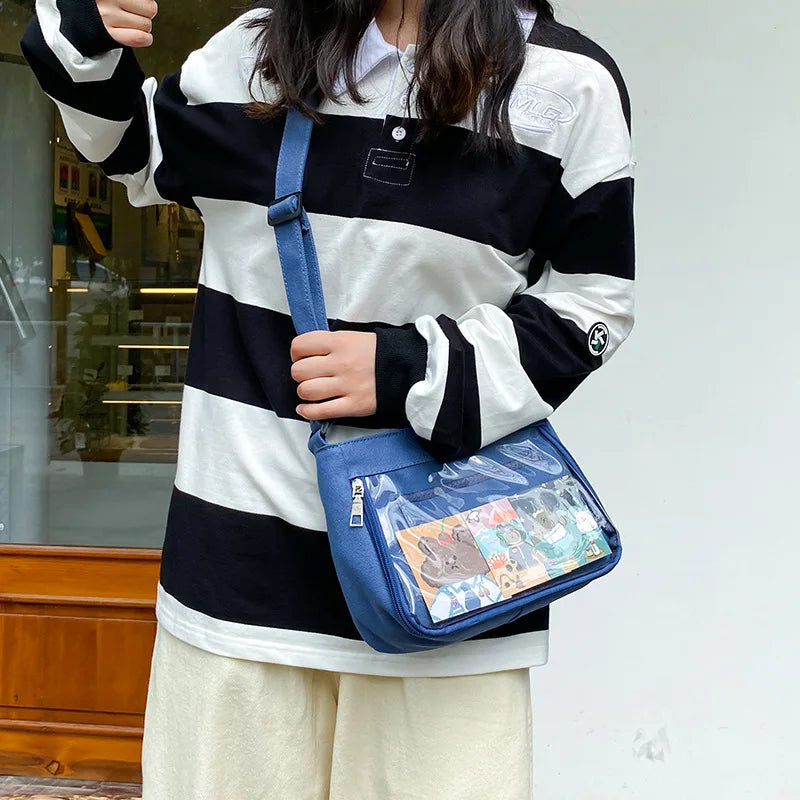 Stylish and practical crossbody bag for women made of canvas. Perfect for students and school use.