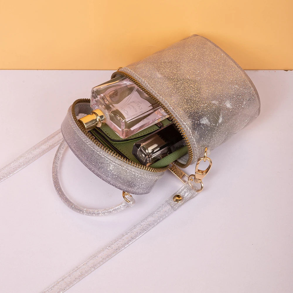 Barrel Shape Crossbody Bag Mini Shoulder Bag PVC Purple Red Silver Tote Handbag