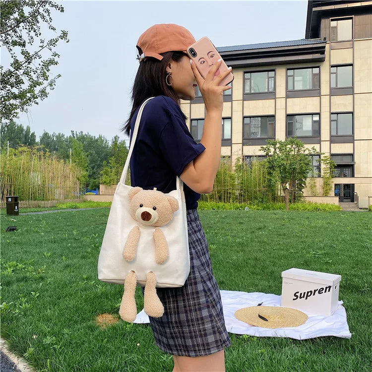 Bear Women Canvas Handbags All-match Ladies Shoulder Bag Large Capacity