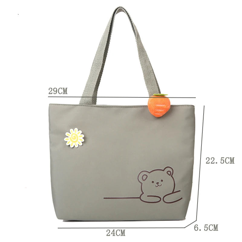 Bear Women Canvas Zipper Bag Student Tote Satchel Travel Purse Handbag