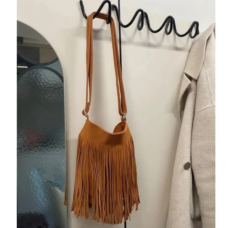 Bohemian Fringe Tassel Bag Vintage PU Leather Purse Women's Crossbody Messenger